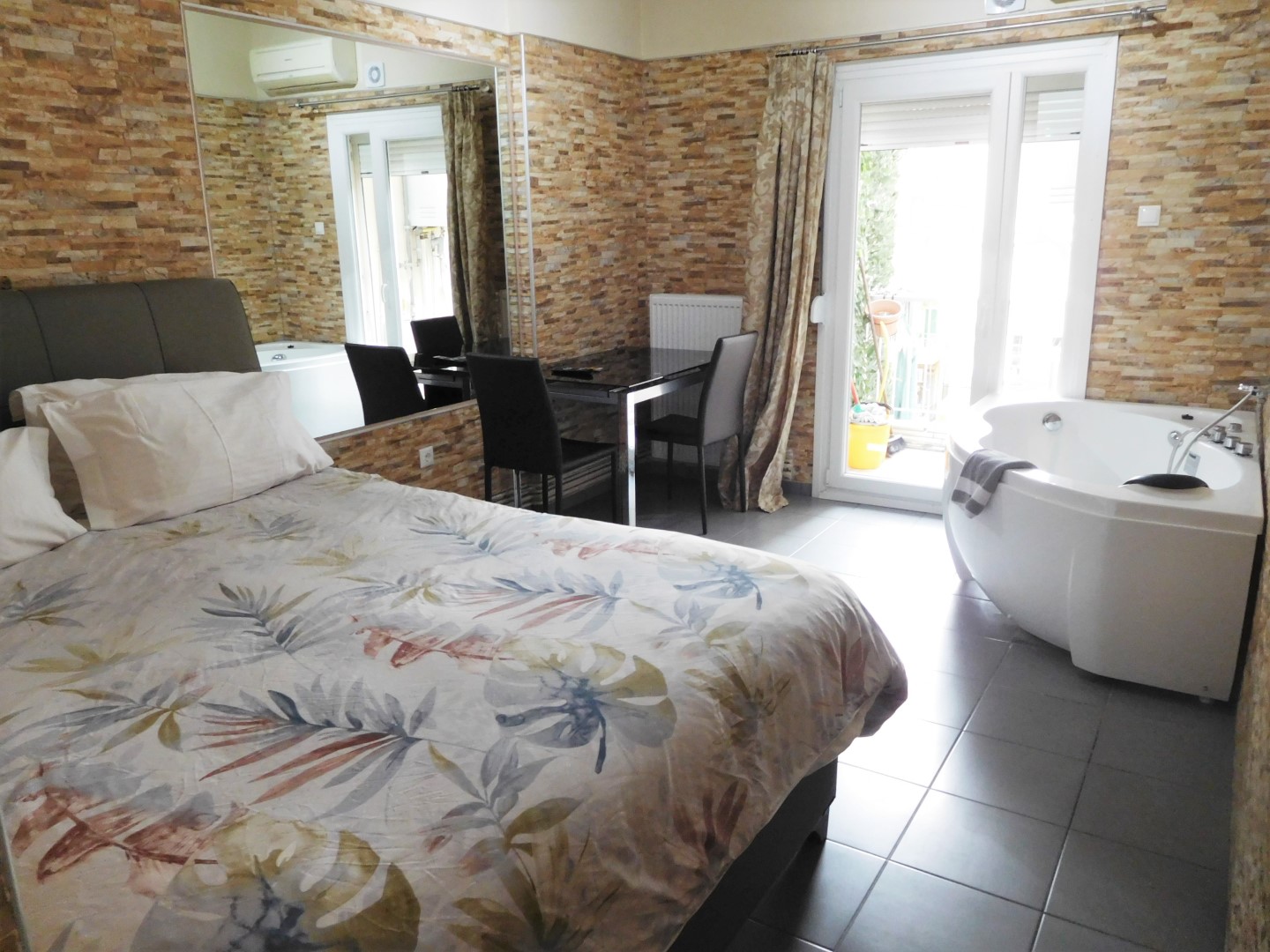 Σε καλό σημείο στο κέντρο δίπλα σε όλα. Δεν λείπει τίποτα έχει όλες τις ανέσεις και το τζακουζι μεγάλο πολύ βολικό..Καθαρό δωμάτιο και περιποιημένο....